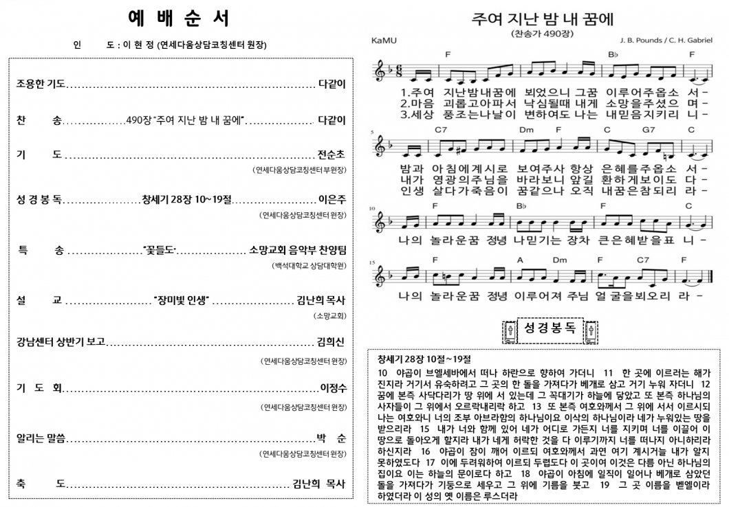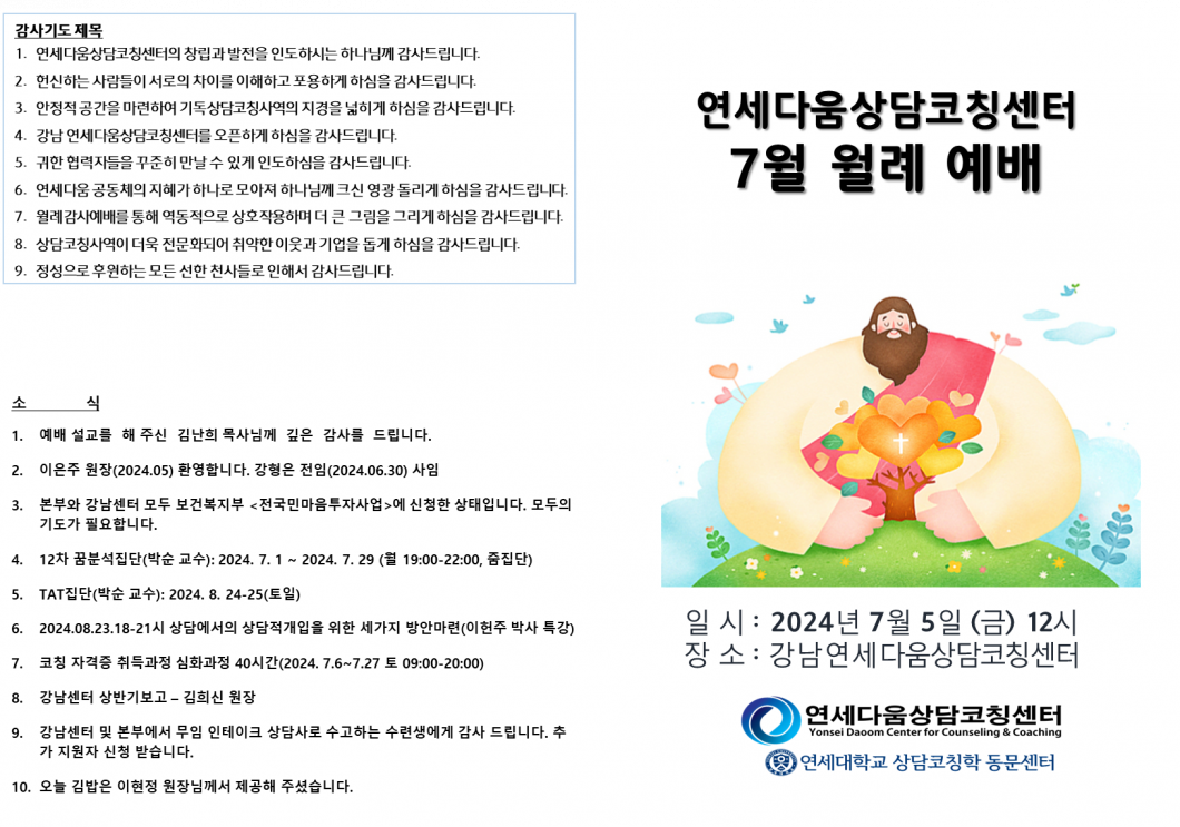 주제: [연세다움상담코칭센터] 7월 월례예배