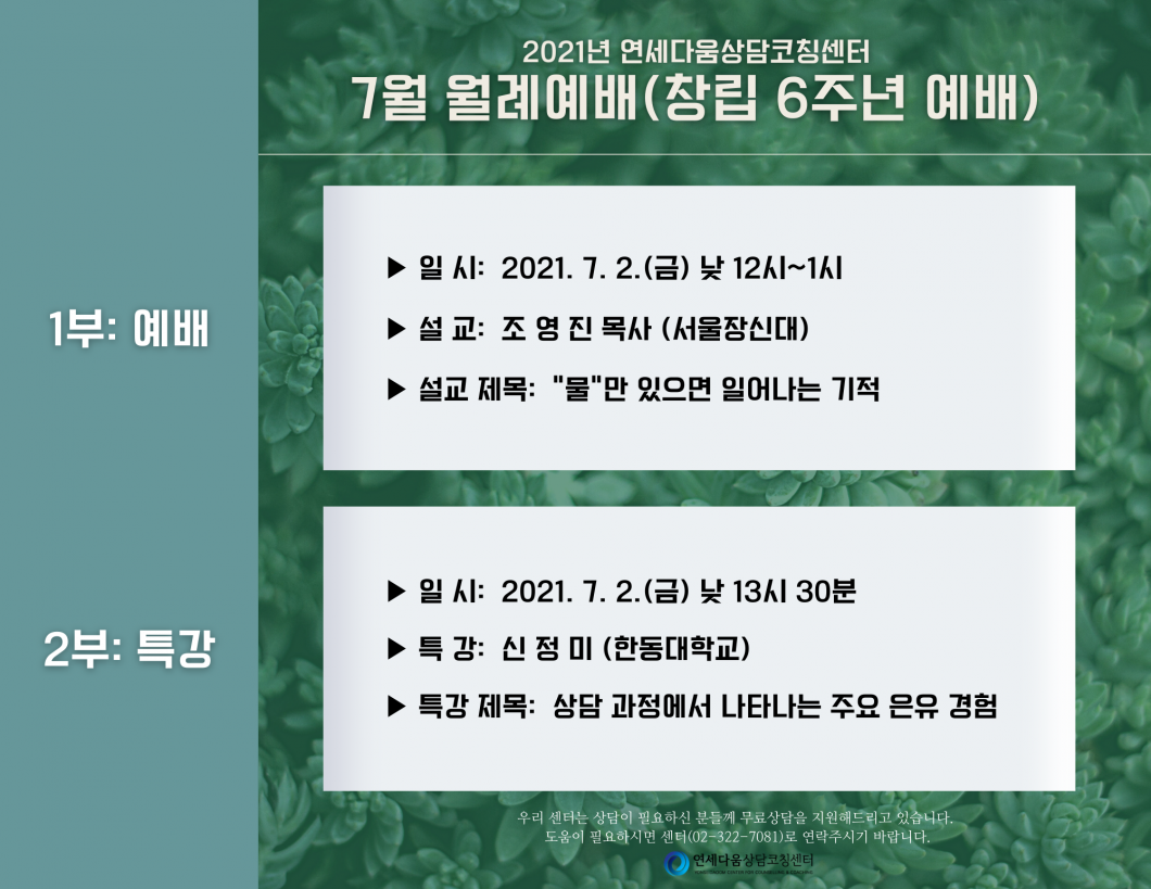 2021년 7월 월례예배 & 월례특강(상담과정에서 나타나는 주요 은유경험)