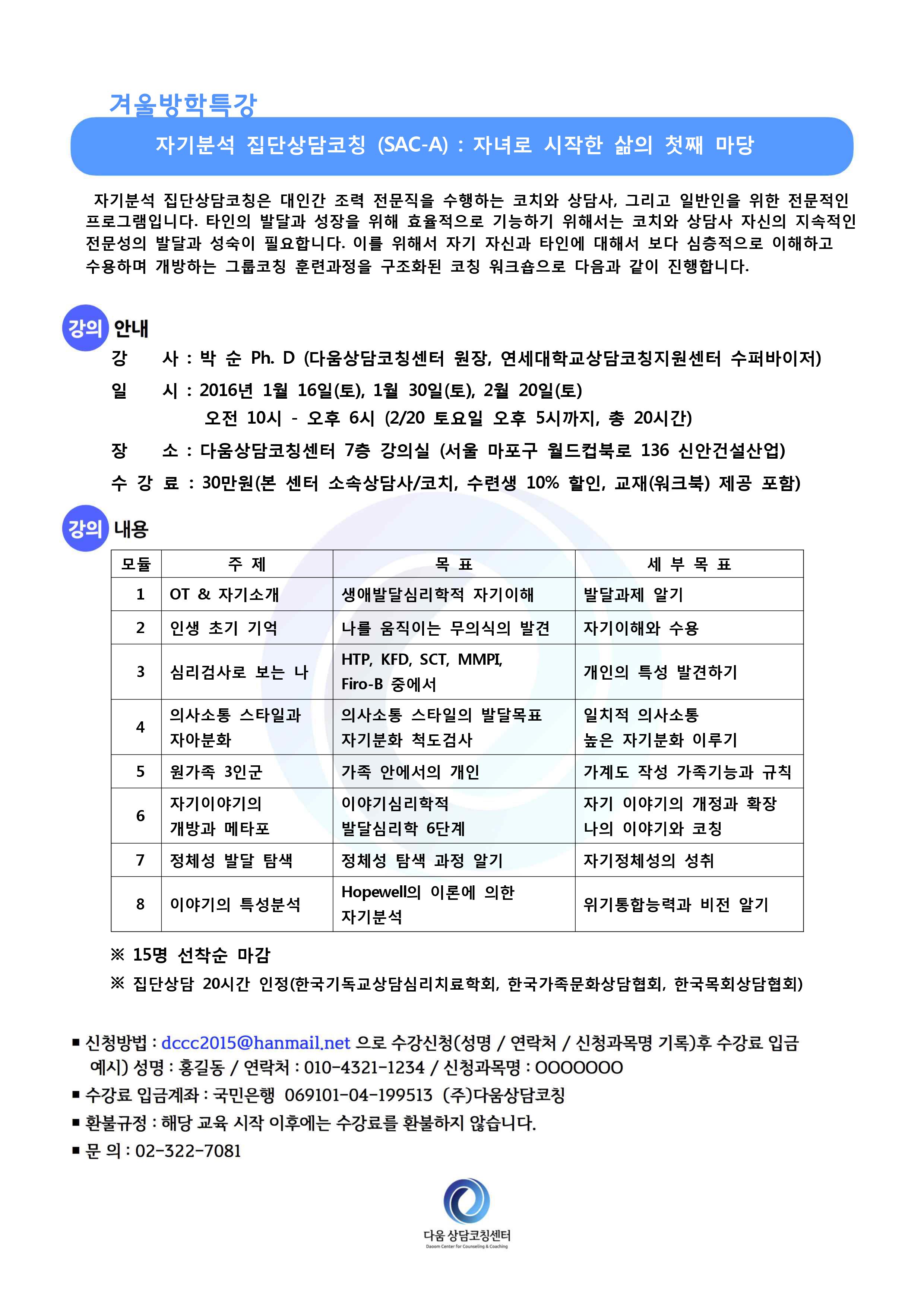 문의사항은 센터로 연락주시기 바랍니다. (02-322-7081)