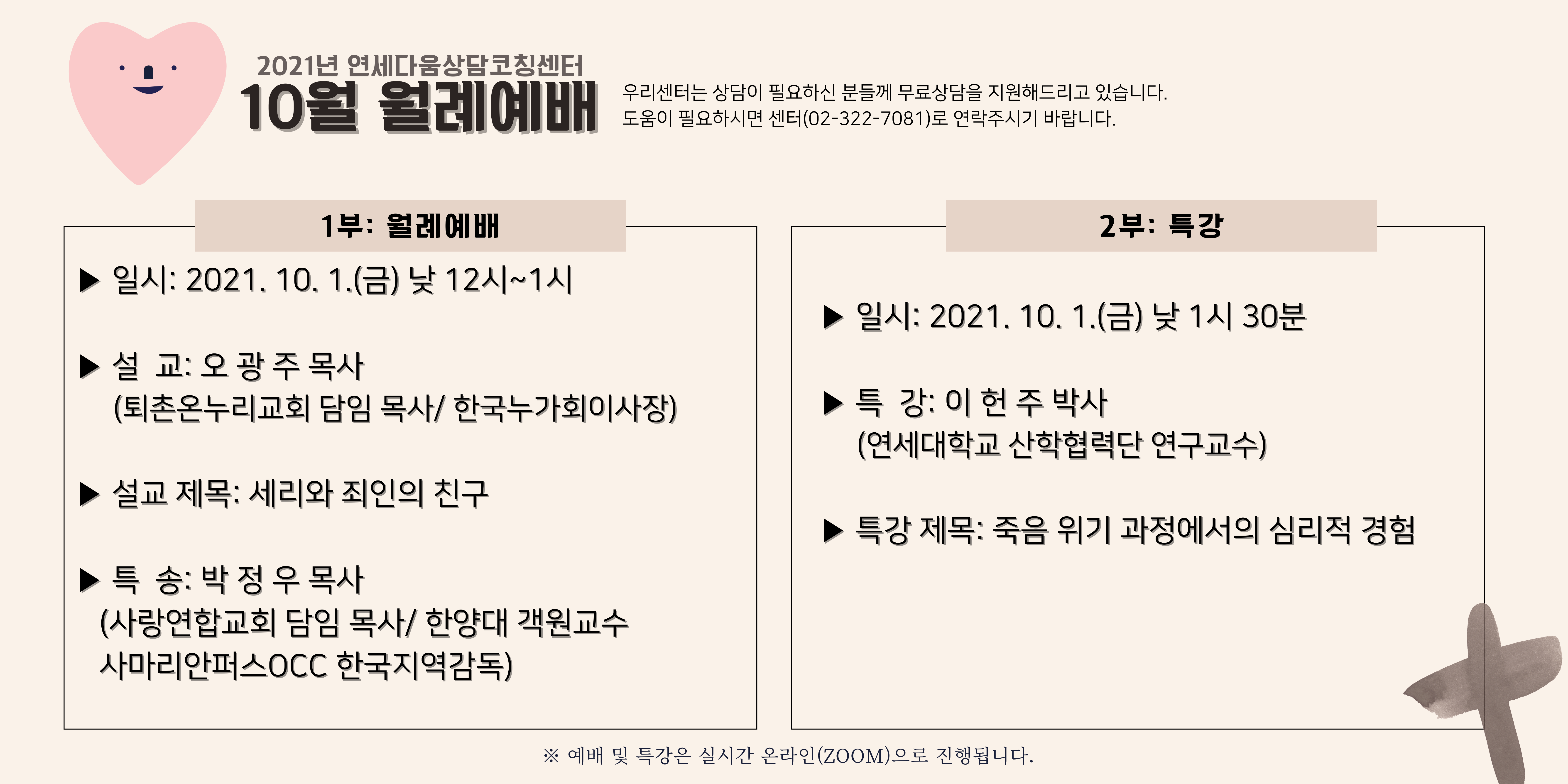 2021년 10월 월례예배 & 월례특강(죽음위기 과정에서의 심리적 경험)
