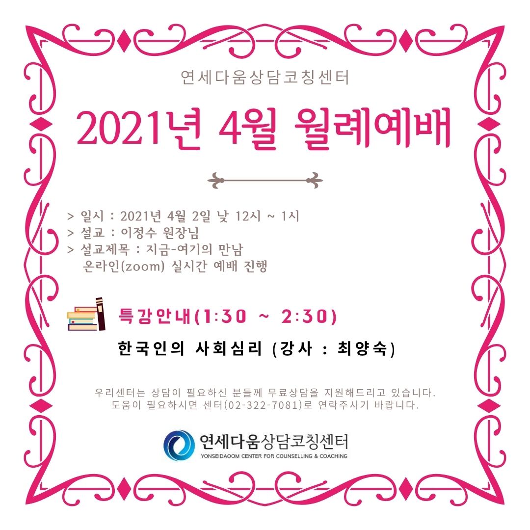 2021년 4월 월례예배 & 월례특강(한국인의 사회심리)