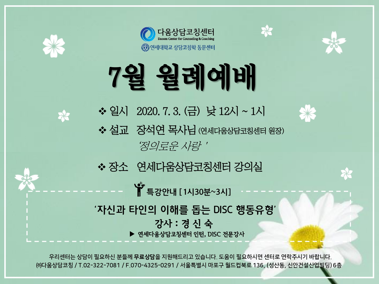 2020년 7월 월례예배 & 월례특강(자신과 타인의 이해를 돕는 DISC 행동유형)